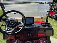 New Denago ROVER XL (LSV) Color: SCARLETT w/GREY Cushions - LSV (Low Speed Vehicle) up to 25 mph - Apple CarPlay & Android Auto - 5kW AC Motor - Tilt Steering - Rear Camera - 110V AC Outlet - LiFePO4 Lithium Battery - Four Wheel Hydraulic Brakes 5 Year Limited Warranty on Lithium Battery 2 Year Limited Warranty on Vehicle