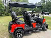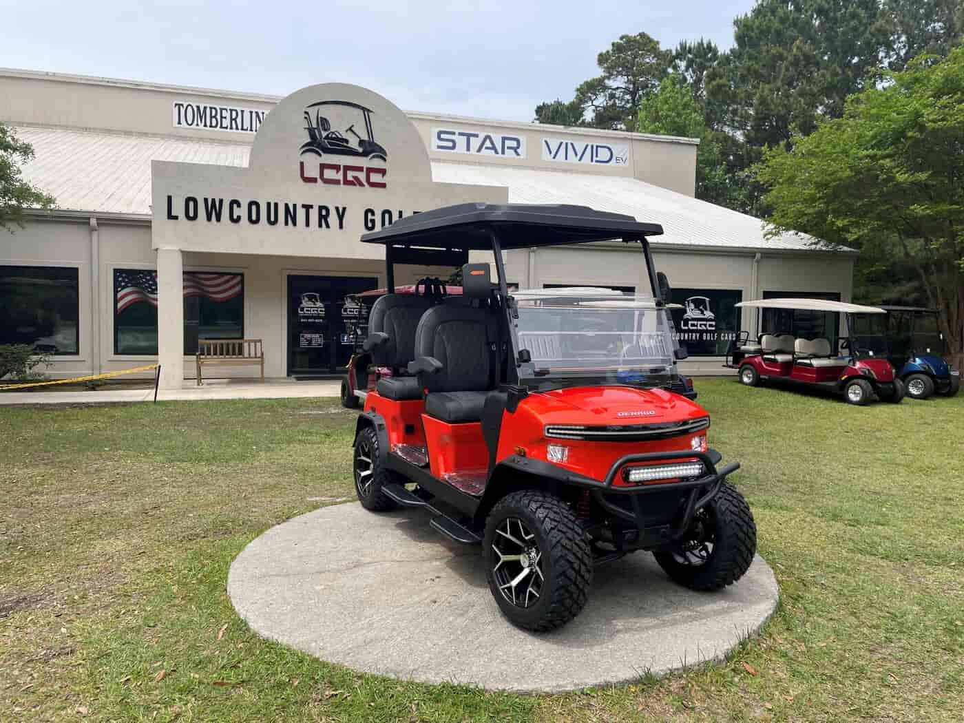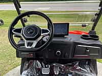 New Denago ROVER XL Color: LAVA - LSV (Low Speed Vehicle) up to 25 mph - Apple CarPlay & Android Auto - 5kW AC Motor - Tilt Steering - Rear Camera - 110V AC Outlet - LiFePO4 Lithium Battery - Four Wheel Hydraulic Brakes 5 Year Limited Warranty on Lithium Battery 2 Year Limited Warranty on Vehicle