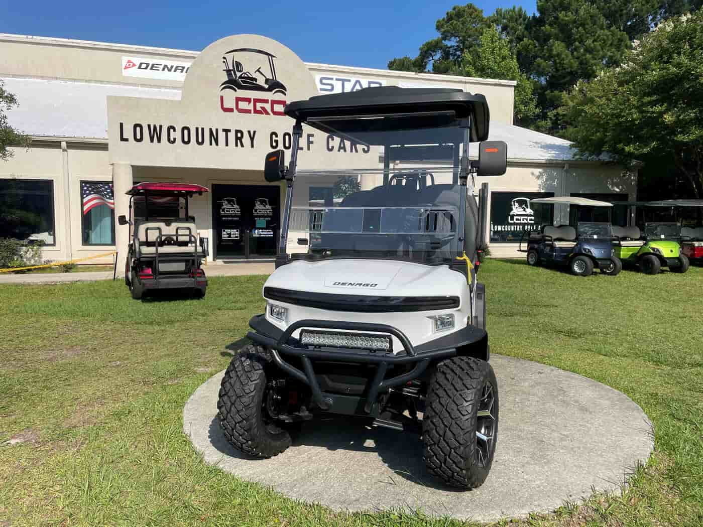 New Denago ROVER XL (LSV) Color: WHITE w/GREY Cushions - LSV (Low Speed Vehicle) up to 25 mph - Apple CarPlay & Android Auto - 5kW AC Motor - Tilt Steering - Rear Camera - 110V AC Outlet - LiFePO4 Lithium Battery - Four Wheel Hydraulic Brakes 5 Year Limited Warranty on Lithium Battery 2 Year Limited Warranty on Vehicle